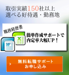 | 給与 | 【年収】300万円~400万円 【月給】200,000円~300,000円 ※経験、前職給与を考慮のうえ、決定します。 ■賞与年2回 ■昇給年1回 |