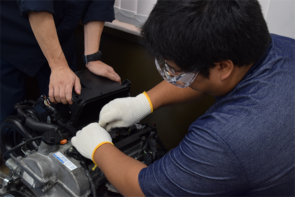 そのため、整備経験が全くない方を対象としてますので実習を中心に分かりやすい講習を行っています。(写真は、当校の講習の様子)