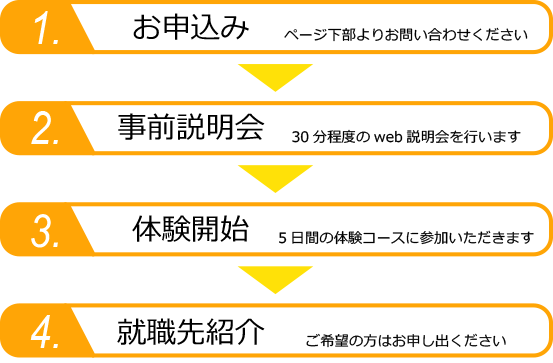 | 事前説明会について | 事前説明会への参加をお願いしています。個別対応、オンライン上での説明会も対応可能です。 |